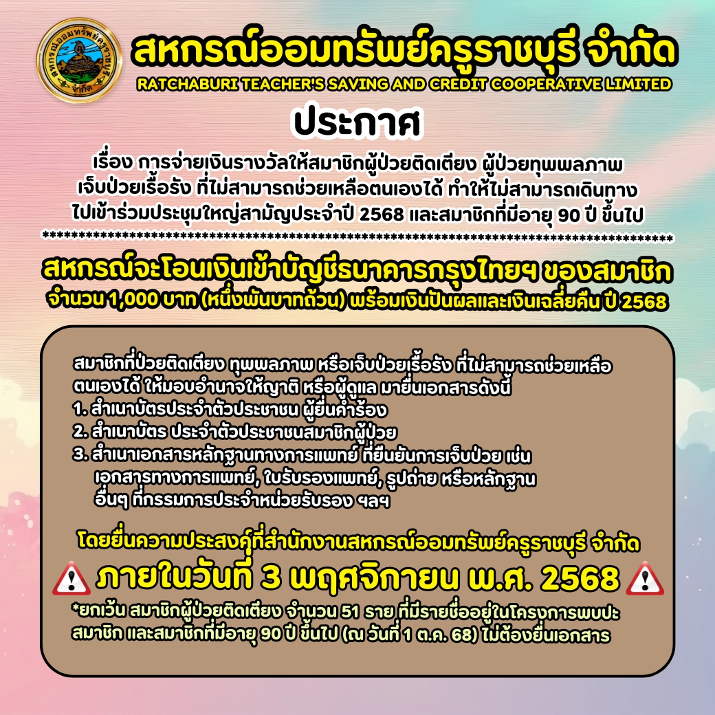รายการย่อแสดงสินทรัพย์และหนี้สิน ประจำปีบัญชี 2568 สหกรณ์ออมทรัพย์ครูราชบุรี จำกัด ในเดือนต่างๆ |