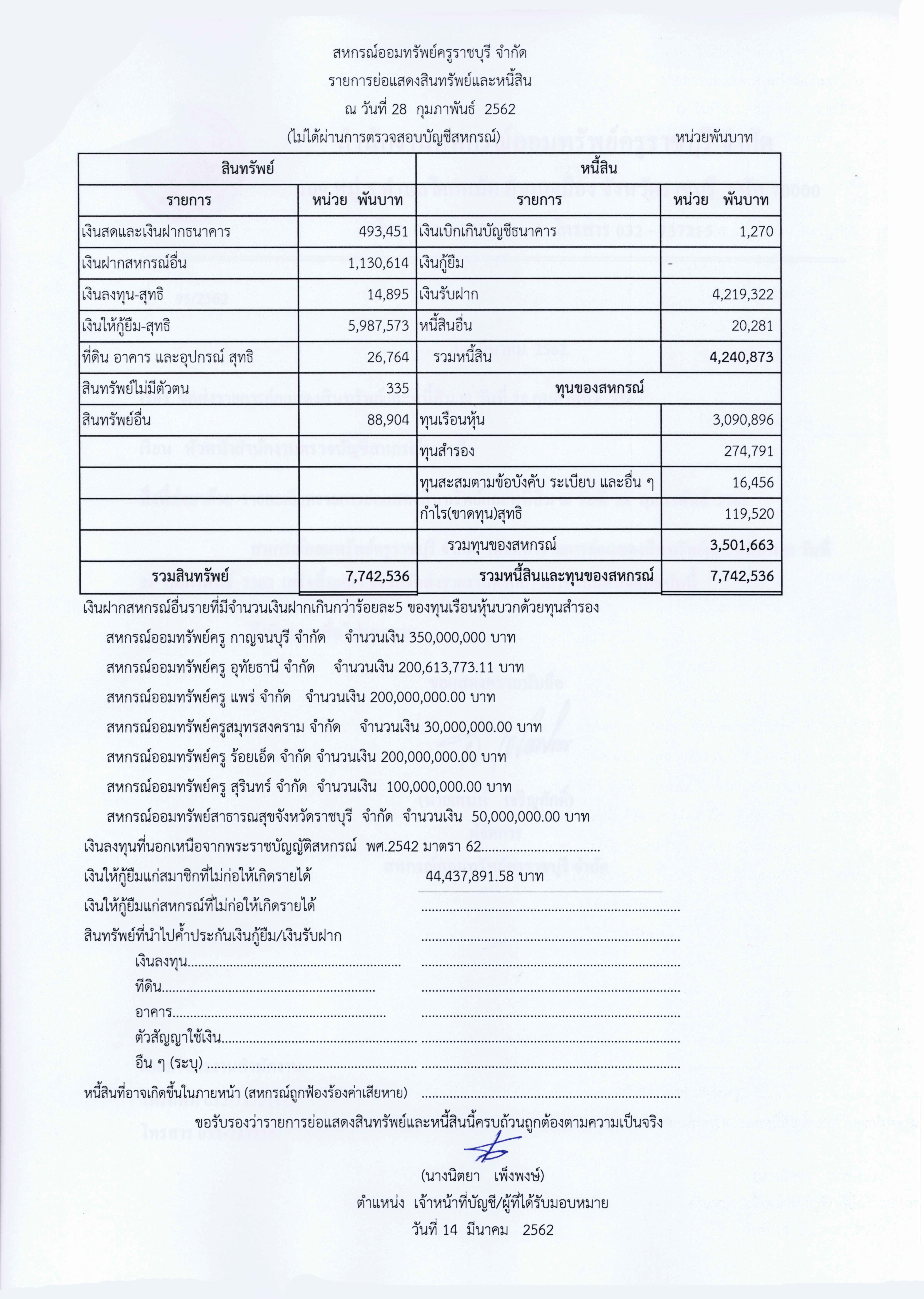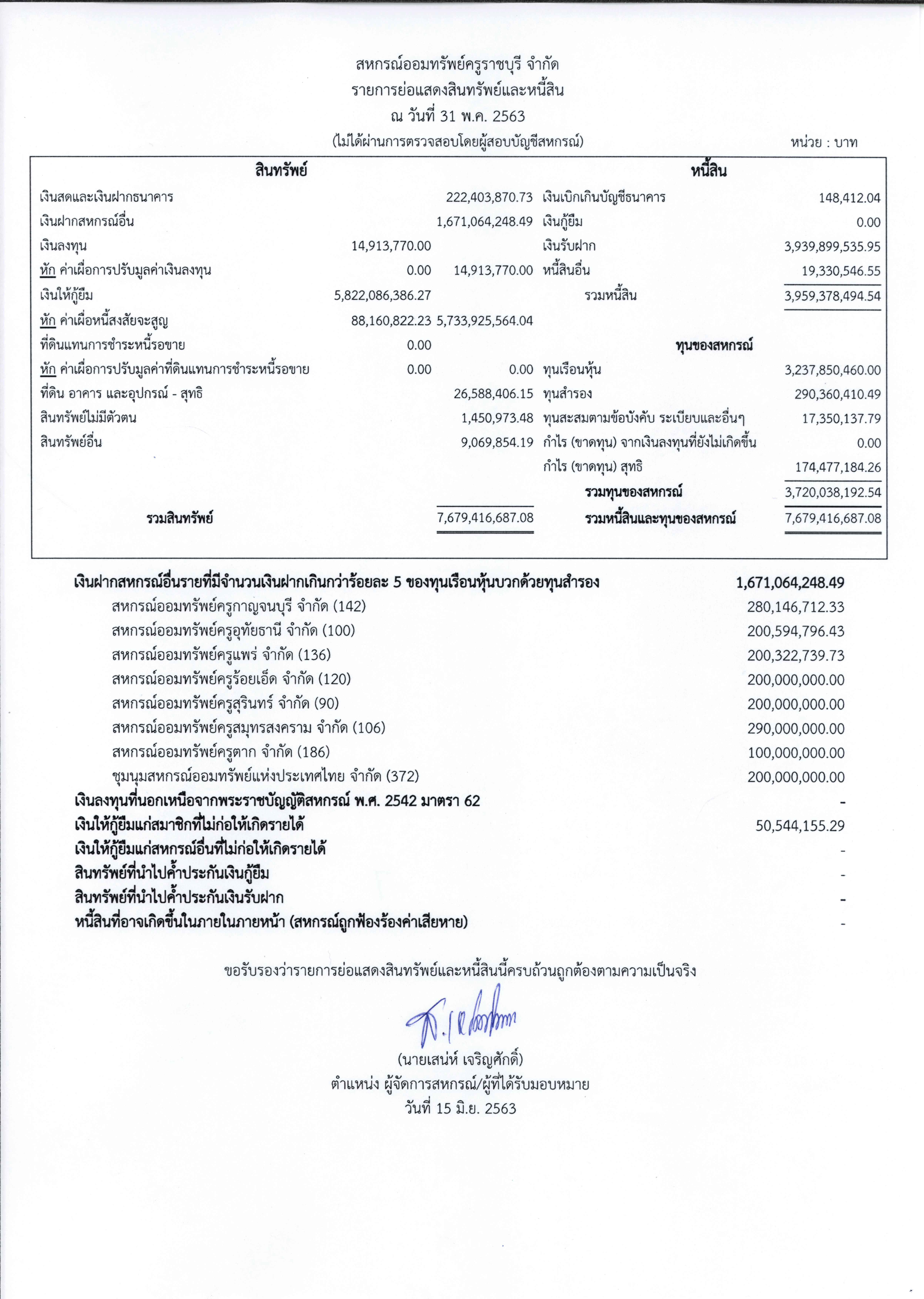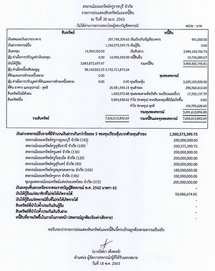 | รายการย่อแสดงสินทรัพย์และหนี้สิน ประจำปีบัญชี 2563 สหกรณ์ออมทรัพย์ครูราชบุรี จำกัด ในเดือนต่างๆ |