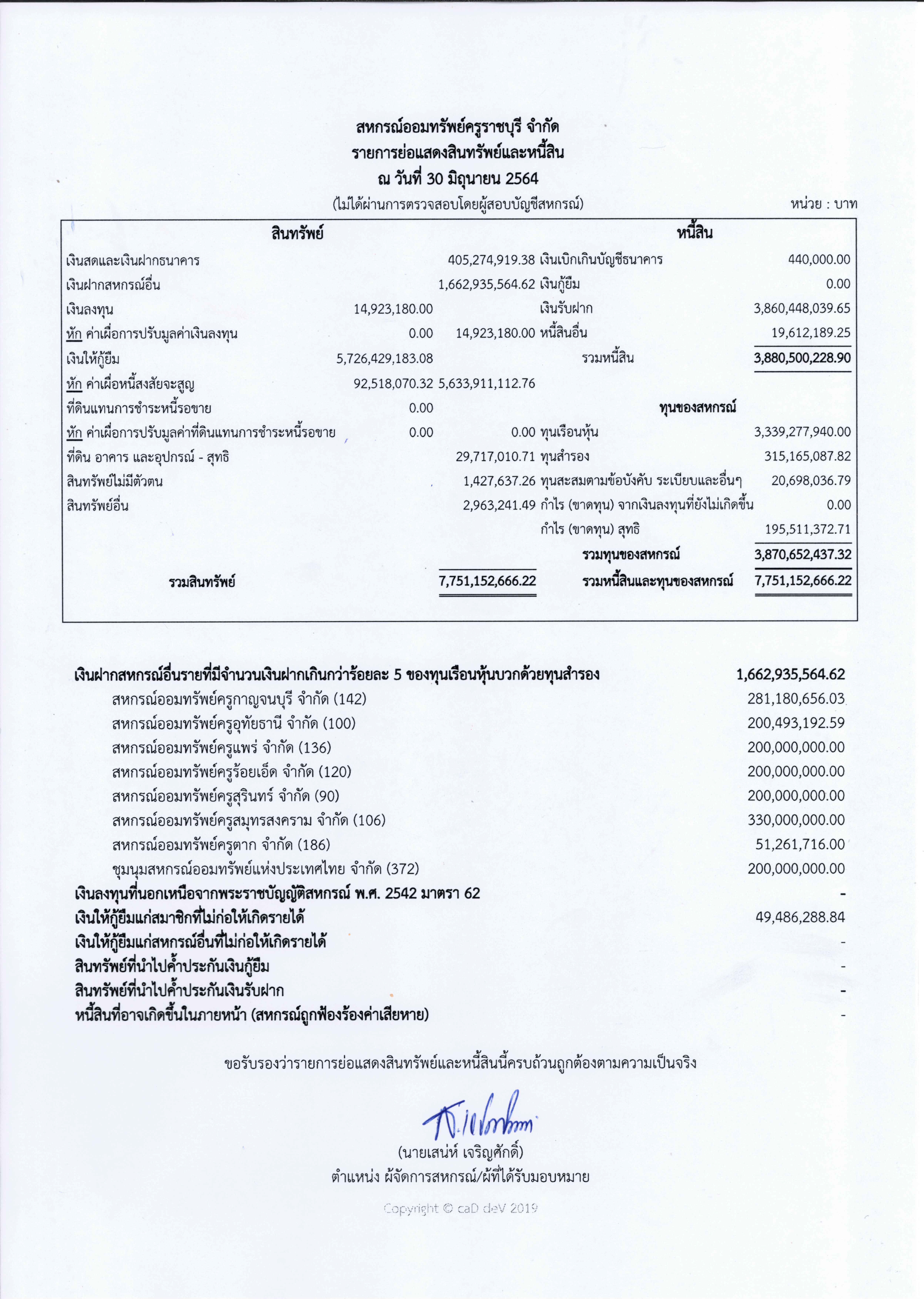 | รายการย่อแสดงสินทรัพย์และหนี้สิน ประจำปีบัญชี 2564 สหกรณ์ออมทรัพย์ครูราชบุรี จำกัด ในเดือนต่างๆ |