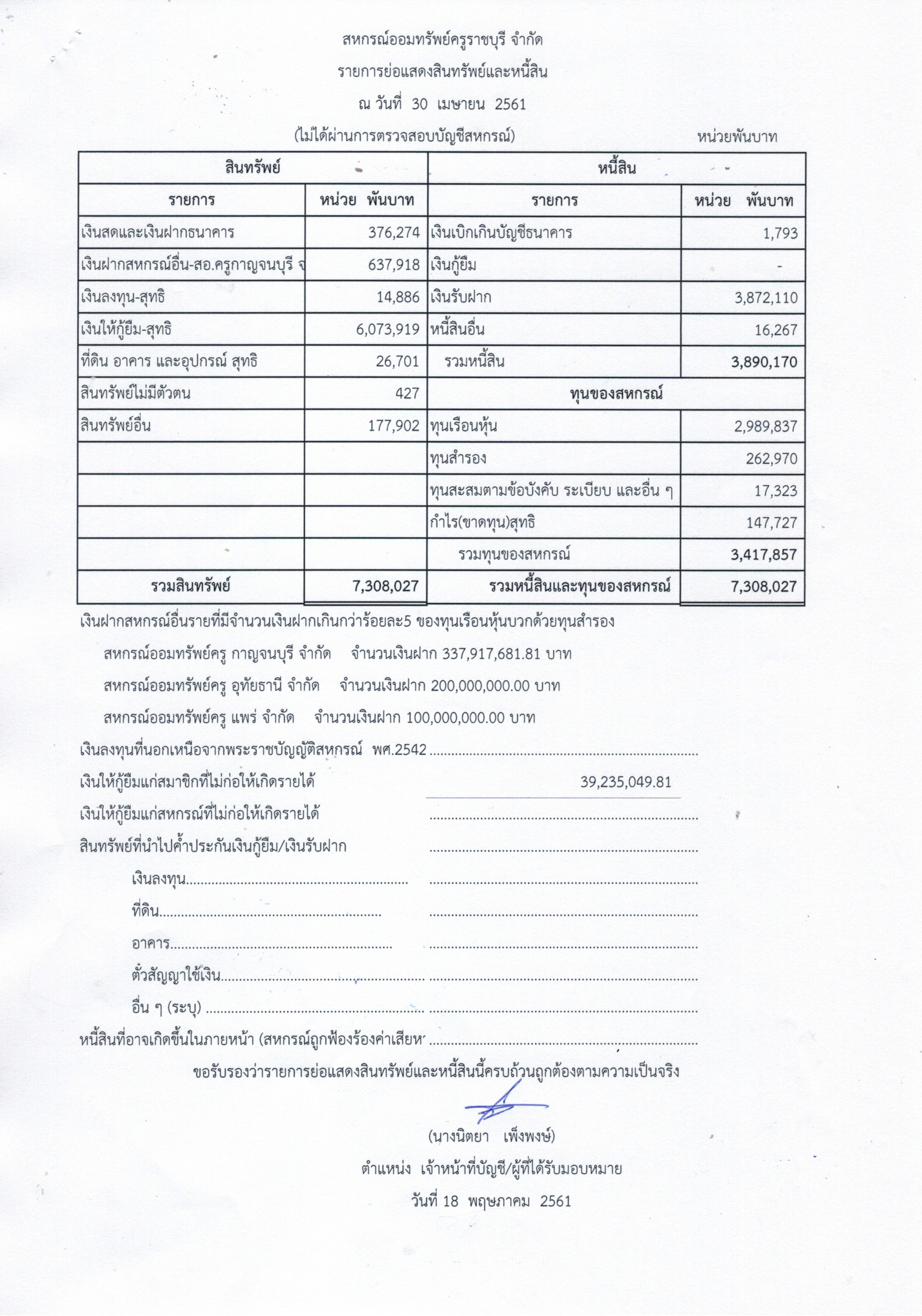 | รายการย่อแสดงสินทรัพย์และหนี้สิน ประจำปีบัญชี 2565 สหกรณ์ออมทรัพย์ครูราชบุรี จำกัด ในเดือนต่างๆ |